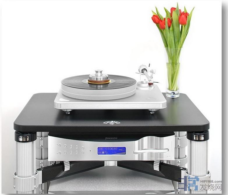说一下较为知名的ROS 4 ReferenceF1音响架,这个音响架在很多大型Hi-End展会上都有所采用,该架子可以按照用家的高度进行适当调配,每层最重承载高达40kg,整体最高负载80kg(非悬浮)。在结构上,承托每层支架的受力点主要集中在支撑立柱的弹簧,牵挂弹簧的配件与柱子间存在一大间隙,无疑是令支架实现“悬浮”于空中。只要胆敢用手指轻轻推动一下支架上的器材,整个器材和支架都会因为弹簧悬浮而晃动,这样起到了极好的悬浮避震功能。Solid Tech的这种主动式设计可谓简单直接而聪明。