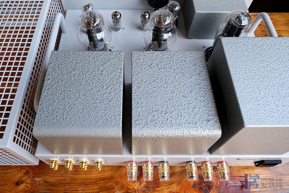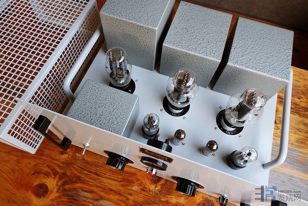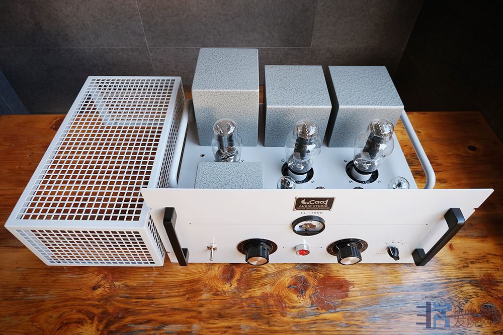 怎么后面那三个“方块”跟丽磁的很象?同一个地方订制加工的吧。老曹这人总是闲不住。一年一个新产品。我台不对称推挽CL340还没换完各种管的搭配,老曹又出新胆机了!