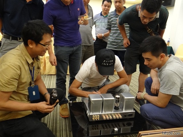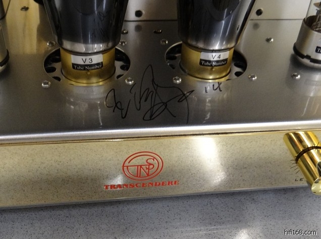 聆听过300B单端以及300B推挽后,当试到M4(EL34)单端后,立即凝神静听,把他最为得意之作《男人四十》拿来回放监听,连他自己都想不到比他录音时带耳机监听的音乐分离度更高,并且音乐与歌声是完全融为一体,立马提出要留一台M4作为自用!阿胆也难得遇到知音,也作个顺水人情,让王大哥为所听的M3签名留念!有趣的是,阿胆在播放M4的时候,换了各种整流管让王大哥鉴别,居然他喜欢上传神5BC3的紧致效果,看来他也开始烧得不轻了,相信以后他一定通过M4进入到M2M3的醉人境界!