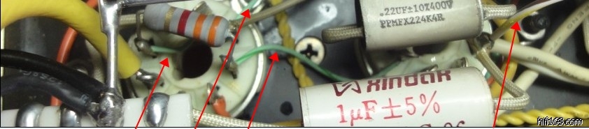 一、入功放后到6sl7间的信号线: