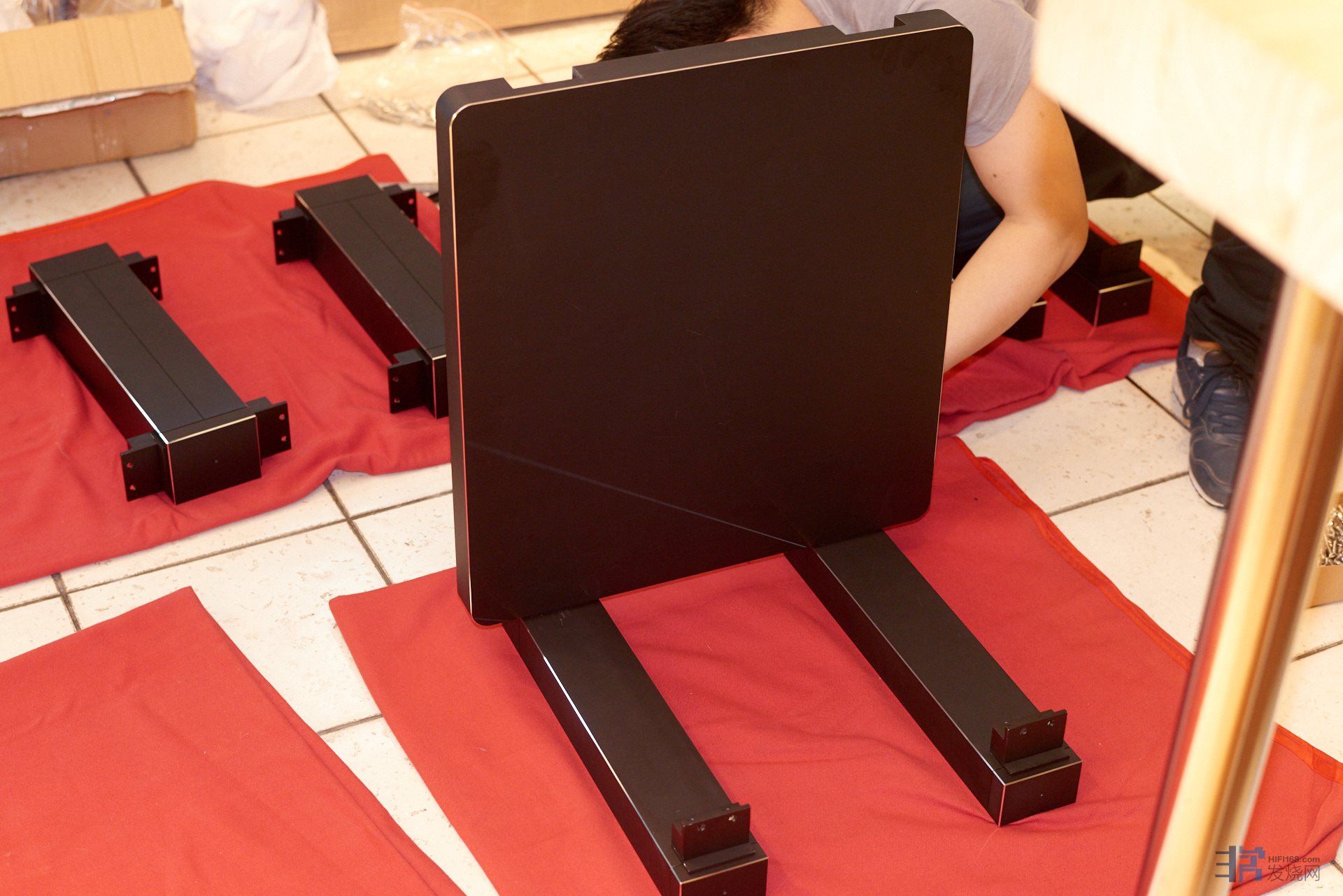 NSR AUDO的机架是对这类“随意”设计的“高级”音响架的嘲笑。首先,我们的加工精度是0.02mm级别的,这在音响工业而言是前无古人的!在图片里大家可以看到经过正确的安装程序安装的NSR机架都有着不同寻常的组合精度。