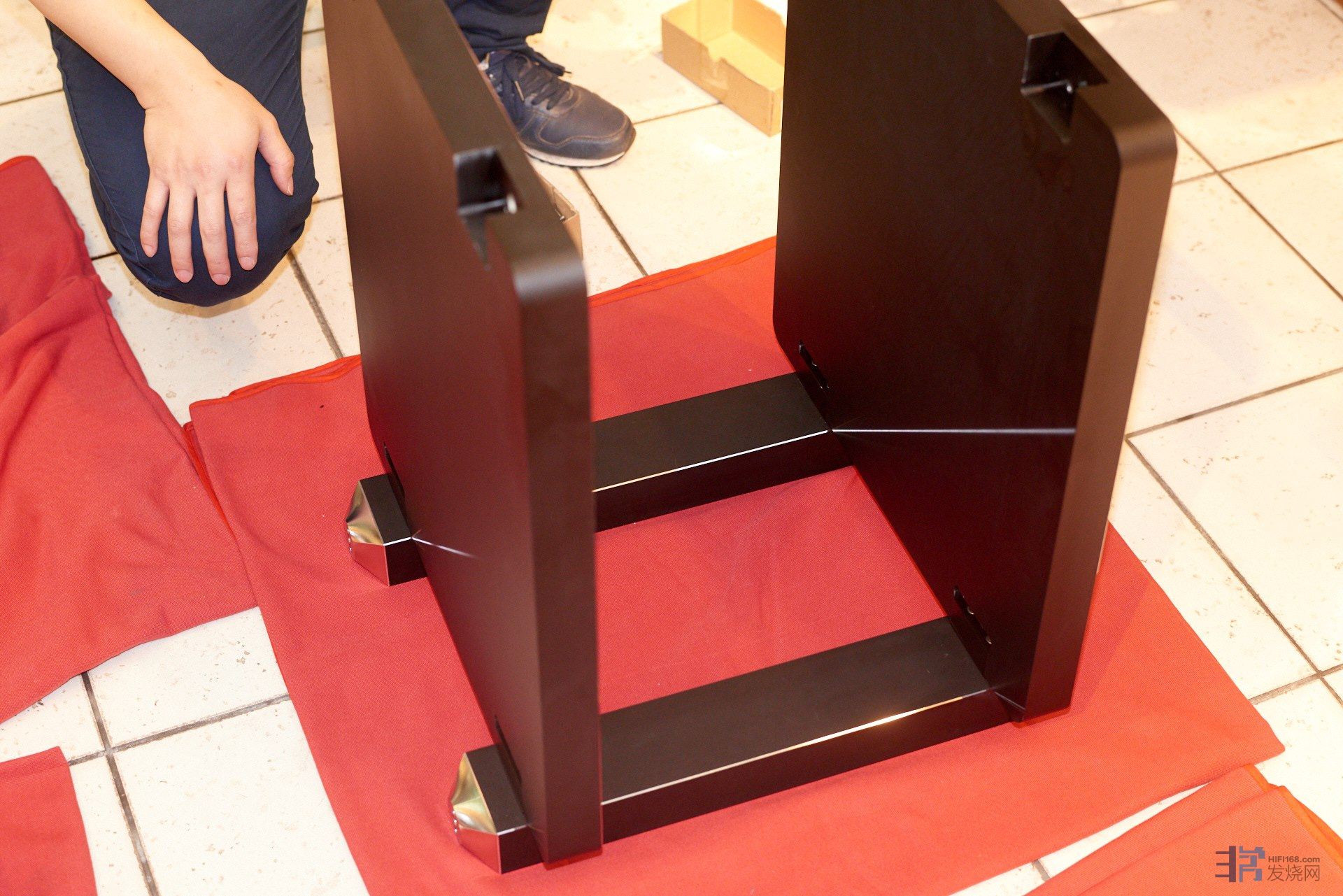 然後把中間的巨型立柱也安裝到外側層板上。得益於超高精度的加工,緊固立柱與層板的過程絕對是一種享受。