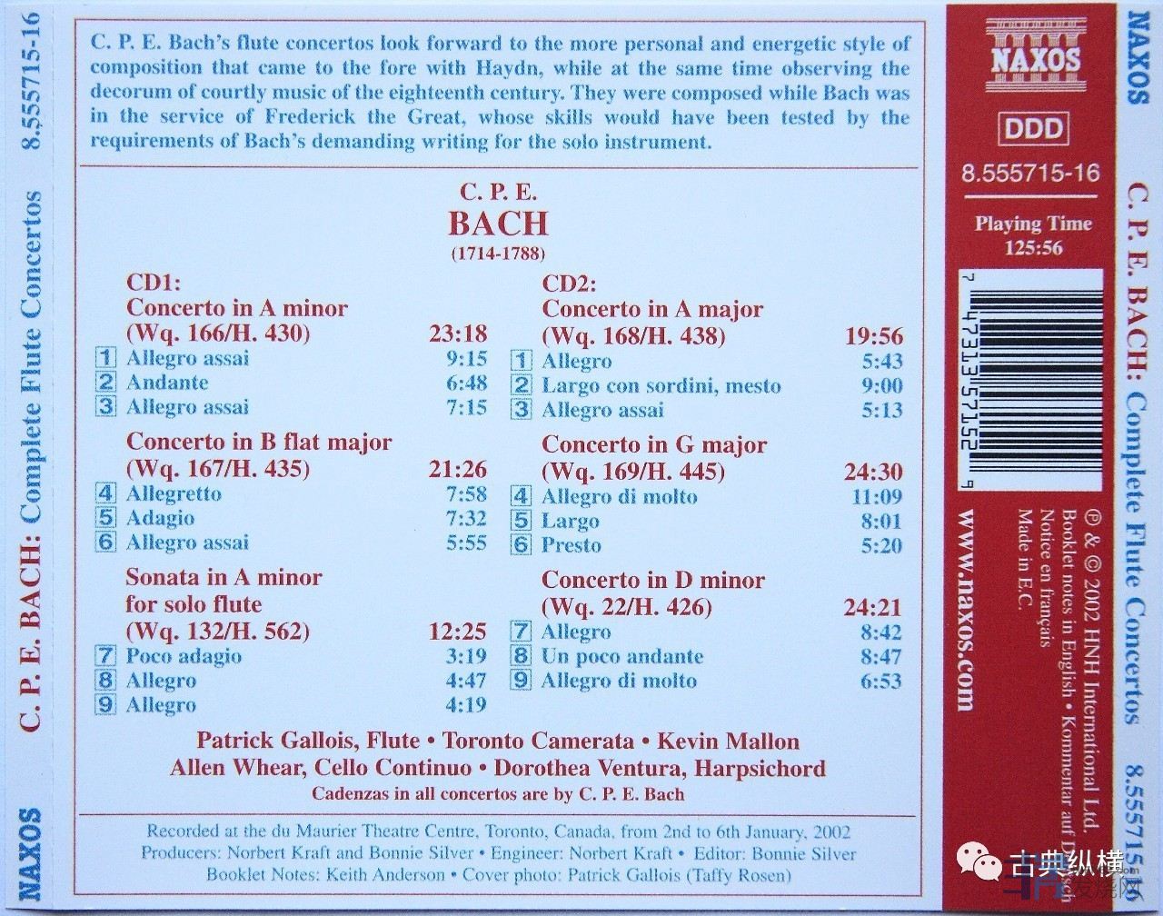 加洛瓦的CPE巴赫长笛协奏曲全集的额资料