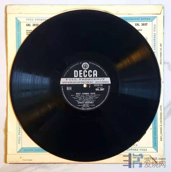 接下来的是DECCA的SXL2037《卡门组曲》和《阿莱城姑娘组曲》,由安塞美指挥瑞士罗曼德管弦乐团。这是英国DECCA公司第一代的立体声录音,俗称“牛头(三角)”或者蓝背,这个时期收藏界称为ED1,是DECCA黑胶唱片中珍贵品种,多数价格不菲。
