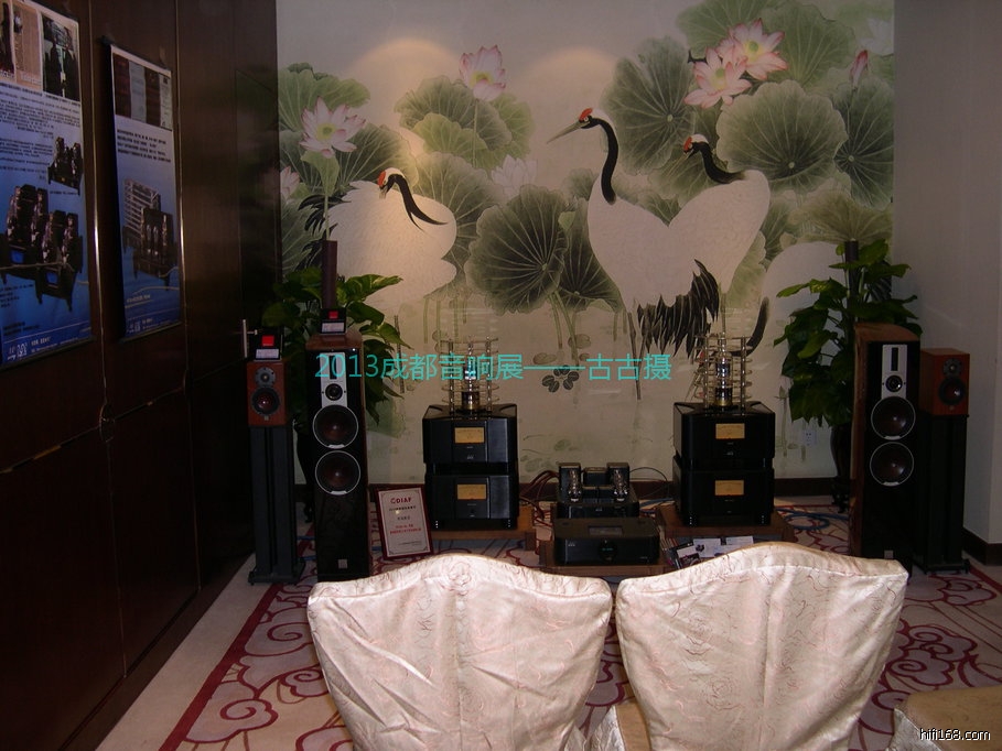 成都永昌是成都著名音响器材代理商,老板张总文武双全,过去常常写点音评文章发表在《试听技术》、《试听前线》等音响杂志上,成都永昌专卖店墙上也挂满了油画供大家欣赏。最早接触成都永昌时,他们是用美国独资、大陆生产朱利达功放推AE音箱,性价比不错,效果还蛮不错的,他们很早就有了自己的网站:http://www.ycaudio.com/这次他们用法国JMF全套分体前后级推动丹拿铂金证据,气势宏大、动态凌厉、中性准确的音色充分展示了出来,令许多观众驻足聆听。