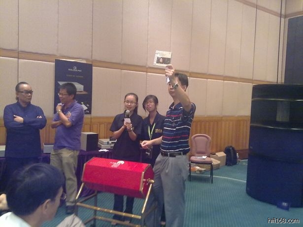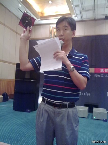 Leo老师介绍他的AQCD唱片技术,并由他的助手给大家做普通CD与AQCD的对比试听。现场试听了EMI的卡拉扬版AQCD贝多芬三重奏,不比不知道,一比吓一跳。普通版CD显得音乐画面较为平面,乐器轮廓质感也比较模糊;而AQCD版的声音更为生动有质感,乐器更立体,也使人更好的投入音乐当中。接着播放AQCD版的佛兰明高,此碟现场感强烈,踏板声结实有力,人声乐器定位良好。