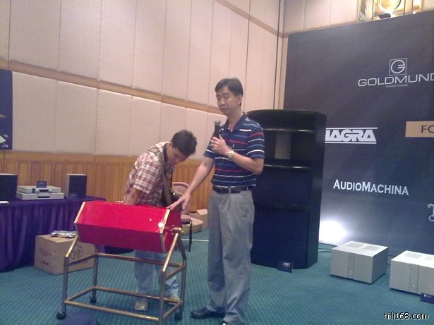 最后是一段大动态的音乐,Kuang版说他深知专业监听音箱的实力,而且伺候它的器材又如此高班,决定爆棚它一把。可能是听说Kuang版在演示音乐时曾搞得人家喇叭拍边,工作人员有点害怕不敢把音量调大了,是有点不够过瘾,不过难道真要弄得喇叭要掉出来的那种临界感觉吗?怕怕,哈哈