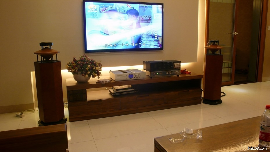 他的家简单干净,客厅狭长,比例适合音响的发挥,比较遗憾的是反射太大,这给音响的发挥打了折扣。这也是一个有十多年烧龄的人,也更换过不少音响器材,目前这一套是他喜欢的:
