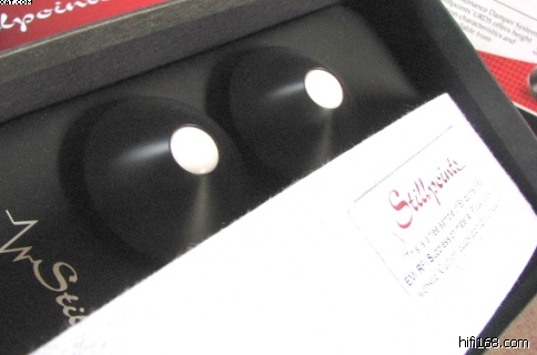 我以前也玩过不少钉,木的.铁的.陶瓷的,合金的.每一种钉都有自身较明显的特点.往往优点和缺点同样突出.好的又太贵.一直没有自己特别满意的钉.选钉的时候一直在各种钉的优点和缺点之间进行取舍.前几天收到水公短信,文字一如既往的简短,口气一如既往的夸张.:有一种钉毒死你.我仿佛看到水公躲在暗处阴笑的嘴脸.在战战兢兢地打听价格之后迅速进行估算.嗯,半年零花钱基本能搞掂一副.大义凛然地要求发一副来试试.在你就等着挨刀吧的短信之后几天,收到stillpoint钉垫.下班后晚饭未吃就迫不及待地换在CD机下,不到5分钟,我才发现先前一直心存侥幸躲开这一刀的念头是多么的可笑.因为换上后根本就没法取下.改善之大可以用吓人来形容.更可怕的是我几乎听不出它的缺点.有朋友可能会问你咋咋呼呼说了这么多,这钉的声音倒底是什么特点?我回答不出来,不管你喜欢不喜欢,正确的声音只有一种.我觉得stillpoint钉就是帮你在往正确的方向靠近.它让声音的细节更多,密度更大,人声也更温柔,就是这该死的温柔,让我心在跳,钞票在流.