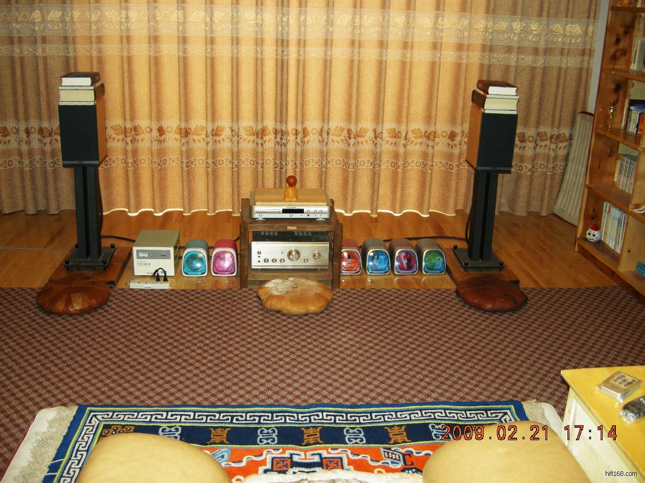 三年前我的音响配置,音箱丹拿听众52,2003年购于西安中图国际音响中心5500元,也不知现在这个店还在不在?功放天龙2000IVR购于成都大发市场超音店7900元,CD机马兰士19A购于成都合记3600元。这套音响价格不到2万元,说实话天龙功放还是很不错,听众52无论弦乐和人声都很不错,可是我四年前贷款买了现在的房子,房间大书架箱低频方面不能满足我的要求,故2009年从成都永昌通过托运方式购买了焦点220,本来计划购买了听众72SE,可是一不小心错发给我一对旧听众72SE,从听众72SE中我无意听出有些碟的乐曲高音发飙,如常安唱的《在那遥远的地方》这首歌人声有尖刺声,我把旧听众72SE打包从西藏昌都寄回成都永昌,张老板人很好及时给我退款,后来加钱购买了现在的焦点220,本想这下好好可以听音乐,可是高音依然发飙。