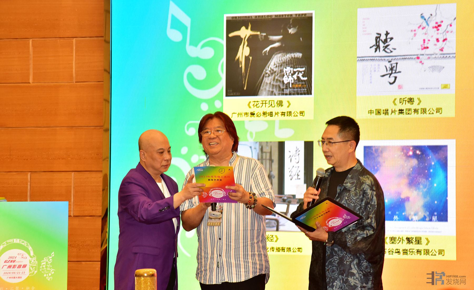 今年的展会入住位于海珠广场的广州华厦大酒店。其中亮点不少:器材方面,德国的汉诺瓦(Hanowa)是家实力雄厚的音响公司,近年才进入中国市场。这次参展,他们将家用和舞台器材都带来了。颁奖会和主场歌手分享会的大厅里就是一套汉诺瓦的TF20线阵,这套造型粗犷的音箱和其它舞台音响一样有着强有力的声压,以保证大厅的每个角落的听众都能清晰地听到声音。它不但在播放强音时气势逼人,同时在细节表现上也十分出色,弱音的气息与质感纤毫毕现,还原度直逼家用Hi-end。此外,Mercury(水星)音箱系统凭独具一格的外型,超卓的音色及备受追棒。该系统的主扬声器背面为全铝架支撑,没有箱体,使用了8个AMT气动式高音,一条48英寸(122公分)长的铝带中音,透过前后发声,利用听音环境后墙空间反射从而令音乐爱好者、音响发烧友在聆听过程中,体验到比只向前发声的传统喇叭获得更佳的“现场感”。再加上两只12英寸的主动外置超低音箱和MOON II系列超高音舞台声场扩展器,无论你是家居客厅还是沙龙会所,都能得到“舞台声场”的美好体验。