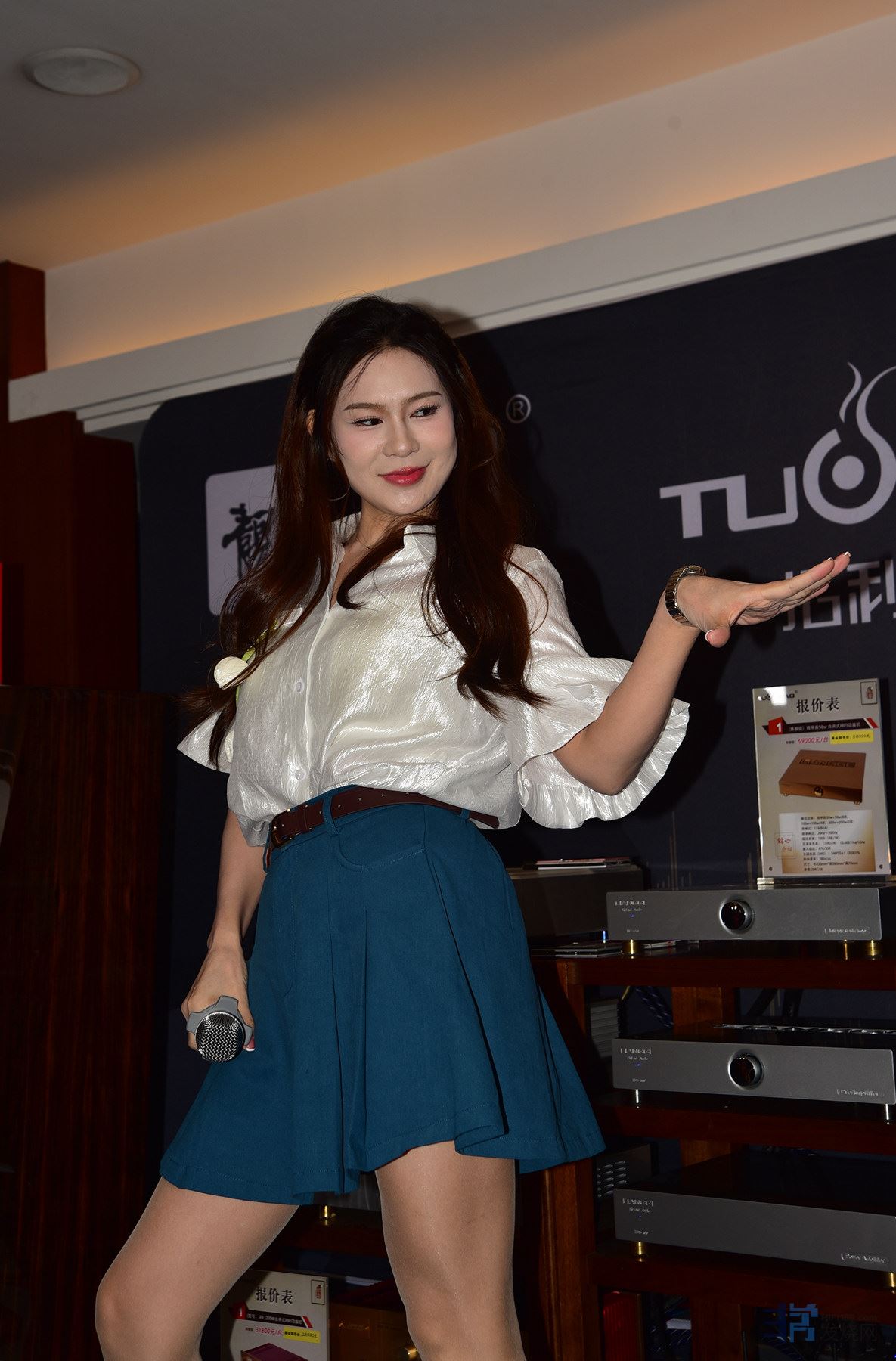国产器材方面,靓歌音响除了带来X7、X9合并式功放和分体前后级组合外,还有一套重达1.2吨、两米多高的巨型音箱,再配上两个靓女音模,可谓亮眼全场了。而展房里的歌手见面会也是从不停歇,歌声不断。