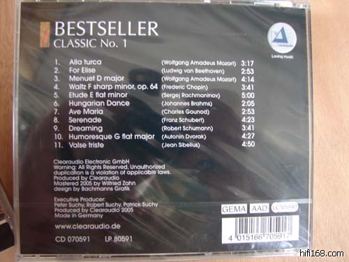 这是德国音响小厂“clearaudio”的发烧CD。该厂至今还只生产与LP相关的产品。