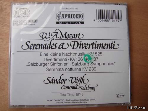 這張莫扎特弦乐小夜曲原本是Capriccio出版,再现现场气氛,细节丰富,音场宽且大,各