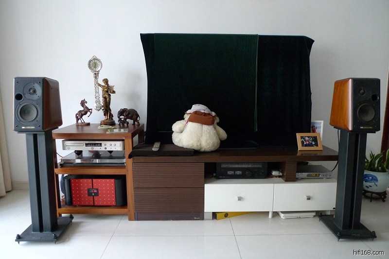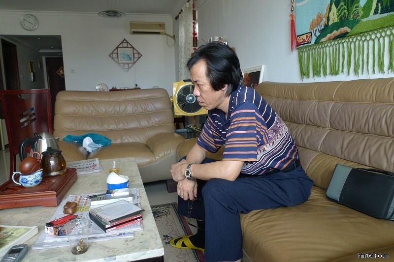 在我与镁声家访江会长之前,江会长已亲临寒舍指导,他对我的系统的总体评价是“耐听,你花了不少功力,目前系统存在的缺点是器材本身的缺点,世霸箱在分音器设计上就有一个偏门,使它加工简单又能出好声,但是在大音量时,中音会在高音单元产生,声音就会蒙了。世霸箱兴起主要是香港居住空间小而容易产生好声,马兰士CD机的转盘较差”。家访我家后,他又马上带我去他的工作室听了他的一套也属监听型书架箱的系统,让我感受一下同样是书架箱,两者之间的区别。当晚,我们一起晚饭,除聊音响外,还聊了很多,包括中国改革开放30年,国外朋友的评价,中国在国际上的地位等。