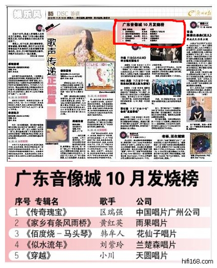 广东音像城2012年10月发烧天碟销售排行榜 广州日报2012年11月10日B5娱乐风·鉴碟版