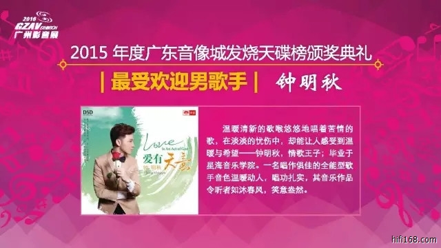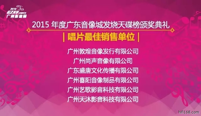 2015年度广东音像城2015发烧天碟榜颁奖典礼已于2016年5月27日下午在广州卡威尔酒店五楼国际宴会厅圆满落幕。作为发烧音乐业界的顶级盛会,2015年度发烧天碟榜各项大奖亦在典礼举行期间一一揭晓。