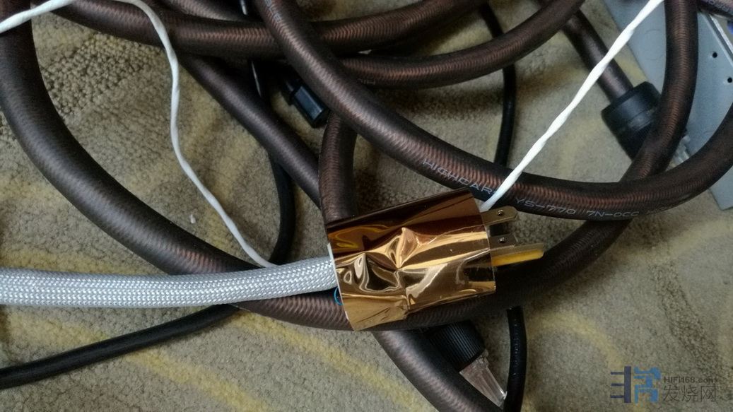 其实梁前辈介绍的AURUM参考系列入门级电源线的价格和折扣都比较吸引,但是本人使用的器材不算高端,而且梁前辈说以后升级线材可以按原线补差价处理,所以决定从NOCTUA系列入门级线材玩起,一样都有黄金镀膜,只是包裹层数和部位不同而已。梁前辈还透露了线材的抗干扰屏蔽容易忽略的地方是在接插件的接驳位置,所以个人要求梁前辈在展房现场对订购的两条电源线进行插头尾包膜处理,