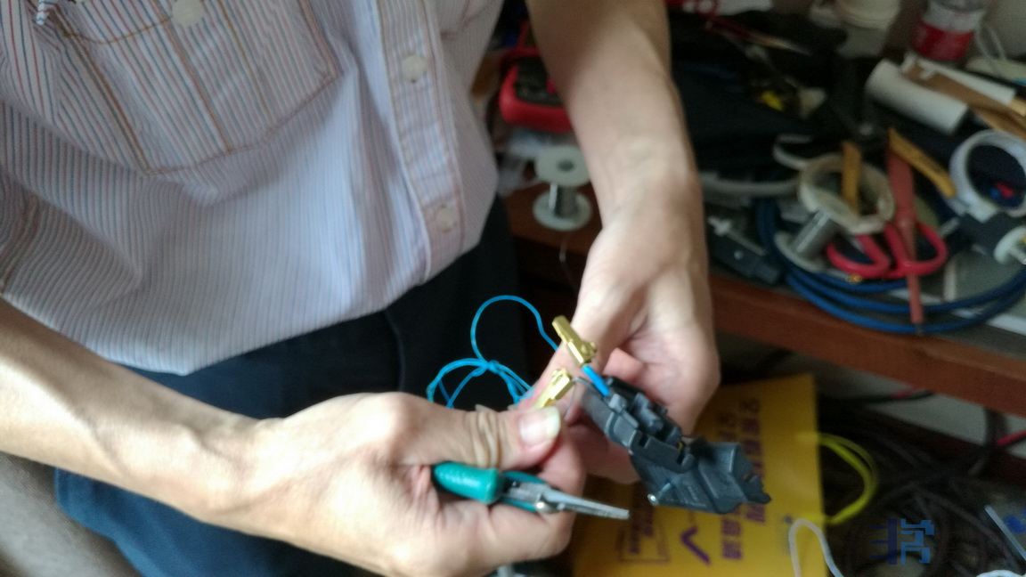4、同是在插头尾包膜的过程,看到他的电源线插尾的夹件与线基接驳是焊接的。前辈解析焊接的效果比较厚实,个人喜欢的风格。