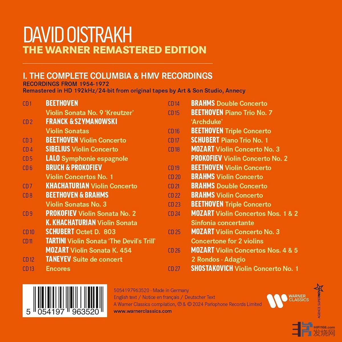 David Oistrakh在Philips的商业录音,除了楼主提到的贝多芬小提琴奏鸣曲全集之外,尚有和Haitink合作的肖斯塔柯维奇第一小提琴协奏曲,Philips在93年在CD上也出版过。另外music1980为何认为大卫在Philips录制的贝多芬小提琴奏鸣曲的环保装再版的制作失败呢,呵呵?我在一些不同的音响系统里面都听过,效果均相当之不俗;当初的正价版套装CD我也在自家的系统里听 felixcat 发表于 2004/7/30 22:08:00