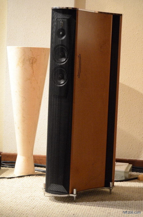 WILLSON版主先播了陈洁仪演唱的香港音乐舞台剧《雪狼湖》的插曲“原来只要为你活一天”(MP3),马勒5片段等普通MP3文件和黑胶转录或付费下载的高格式文件,现场有位先生站了起来,指出低频不错,不象是KTEMA前面面版的小单元的表现。德哥马上介绍了设计师在KTEMA扇型后背设计安装了两个9寸低音及利用后面的板材和两边的“缝”做出的奇妙音响效果,这项设计特显了FRENCO SERBLIN匠心独具的设计天赋。