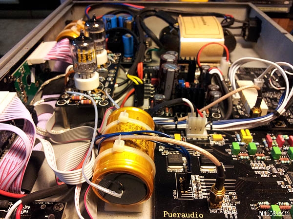 我一直认为这个解码的平衡输出比胆缓冲RCA输出要靓声,主要是音场的开阔度,高频的细节,中高频衔接的顺滑程度,都是平衡输出比较靓声。即使我的功放没有平衡输入的情况下,我都会使用美星无源前级来做平衡-单端的转换。最近甚至想把这两西电胆拔下来。。。要拔下来必须开机盖,结果发现胆缓冲电路板下的四个电容似乎档次不太够,于是出于好奇,换四个补品电容会是什么效果?