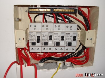 我也从电表分别拉了四平方和六平方各二组到音响室电源专用线,而且四条火线与地线(中间)与四条零线之间相离20Cm,整体效果有较大提升,如图