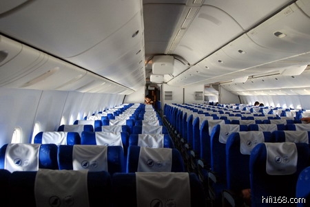 诺大的波音777,能容几百人的机舱里几乎空空如也——也许这架飞机是我们包下的!