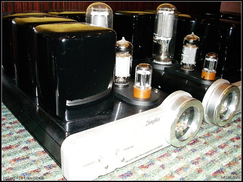 最为难得的是,有位深圳特区的烧友不惜劳苦,自已车来DIY的两对音箱和两对胆后级,还有一台胆前级,听说他老头原来是胆机设计者,也是位胆痴,后级全是A类设计,其中都为300B-845胆皇,一对后级是18瓦,另一对是30瓦,敢与BNW800大食"动物"当众对垒,真予大家倍感矜贵与自豪,都是玩玩吧,这种精神值得后辈效仿.