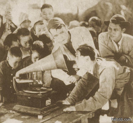 19世纪后期的某一天,法国人乐滨生在上海马路上设摊,用爱迪生发明的留声机播放《洋人大笑》,十文钱听一次,在追求时髦的上海人中引起轰动。就这样,留声机以最平民的一种姿态出现在上海人的面前。不得不佩服这个法国人的勇气,如此的宣传方式是不是有些像今天满大街都有的新品宣传秀。想象一下当时长袍马褂的中国人围绕在留声机边的景像,奇异而和谐的时髦,真是不轰动也难。
