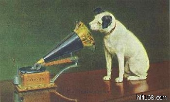 说起这个大黄狗还牵涉到一段赫赫有名的往事:1895年,唱片的发明者伯利在费城开了伯利纳留声机公司。1898年,他又在伦敦开了英国留声机公司,并邀请了唱片史上最伟大的制作人格斯伯格任主持。那时,他还曾经到过中国并录过唱片。开始,这两家公司都使用“天使”商标。1899年英国留声机公司向画家保罗购得一幅猎犬“尼伯”的画像,起初只是做宣传用。1901年,伯利纳留声机公司改名为victor talking machine公司(rca前身)之后,才正式将“尼伯”作为公司的商标,画下加了his master's voice(他的主人的声音)的字样。rca公司直到今天还在使用小狗“尼伯”的商标。
