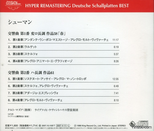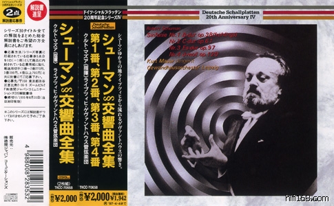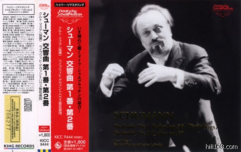这是早几年DS潮中出现的Masur的Schumann四首全集,想必那精美的双蝶盒子大家都很喜爱吧,1995年的发行,属于20周年纪念系列,不过我一直搞不懂这20周年是啥意思(唯一能联系的线索只有清胜也1974年起到德间……)。可惜这个纪念系列属于低价的发行,说明书无啥内容,音质也嫌单薄,现在King这个系列好是好,可惜一查之下,四首现在只发行了这张1号2号,到底有无后续还真是残念!