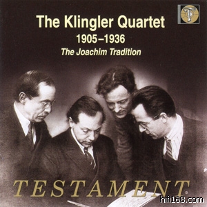 Klingler SQ.早期的活动伴随着一战的结束而告一段落。这期间他们留下了少量的四重奏选段录音,当中最重要的就是1911年和1912录下的三段Beethoven录音,这是现存最早的贝SQ录音,Joachim没能留下这些录音,因此这些离老贝死后84、5年的录音殊为珍贵。这些瀑布般的噪音中透出的微弱声响显示出不可思议的优雅和歌唱性,Klingler SQ.对歌唱性非常地重视,甚至是单独的音符也利用微妙的滑音保持持续的歌唱,而别的SQ.通常都是一弓了事。新星堂的杰出复刻让这些伟大遗产展现出美妙的风采,不能不赞叹一句啊!