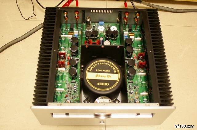 发烧级电子管 6922 担任,并由 6N6 低内阻管组成线性极佳的 SRPP 电路驱动晶体管电流放大器;由于电压放大器完全由电子管担任, 晶体管只是将电子管输出的小电流变为大电流输出, 所以其后级音色与电子管功放音色极为接近, 得到完美的音色表现。