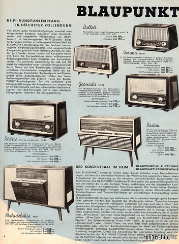 蓝宝,德国品牌, 至今仍然在生产,现在以汽车音响为主。 但其最辉煌的时候还是在70年代以前, 大家一起来欣赏一下其59年的一些一线产品吧。。。