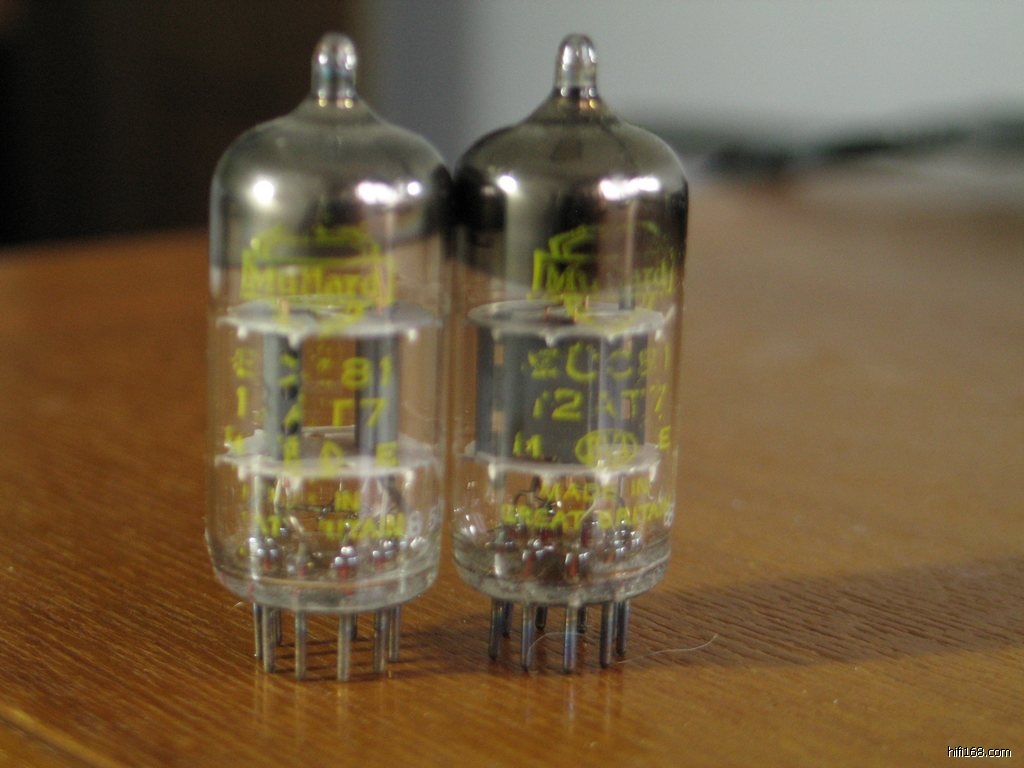 早期英国大盾MULLARD ECC81/12AT7 ,黄字,铜柱,圆环。暗码:TK3 B5A3。测试完好,成色见图。只有一对。价格300元