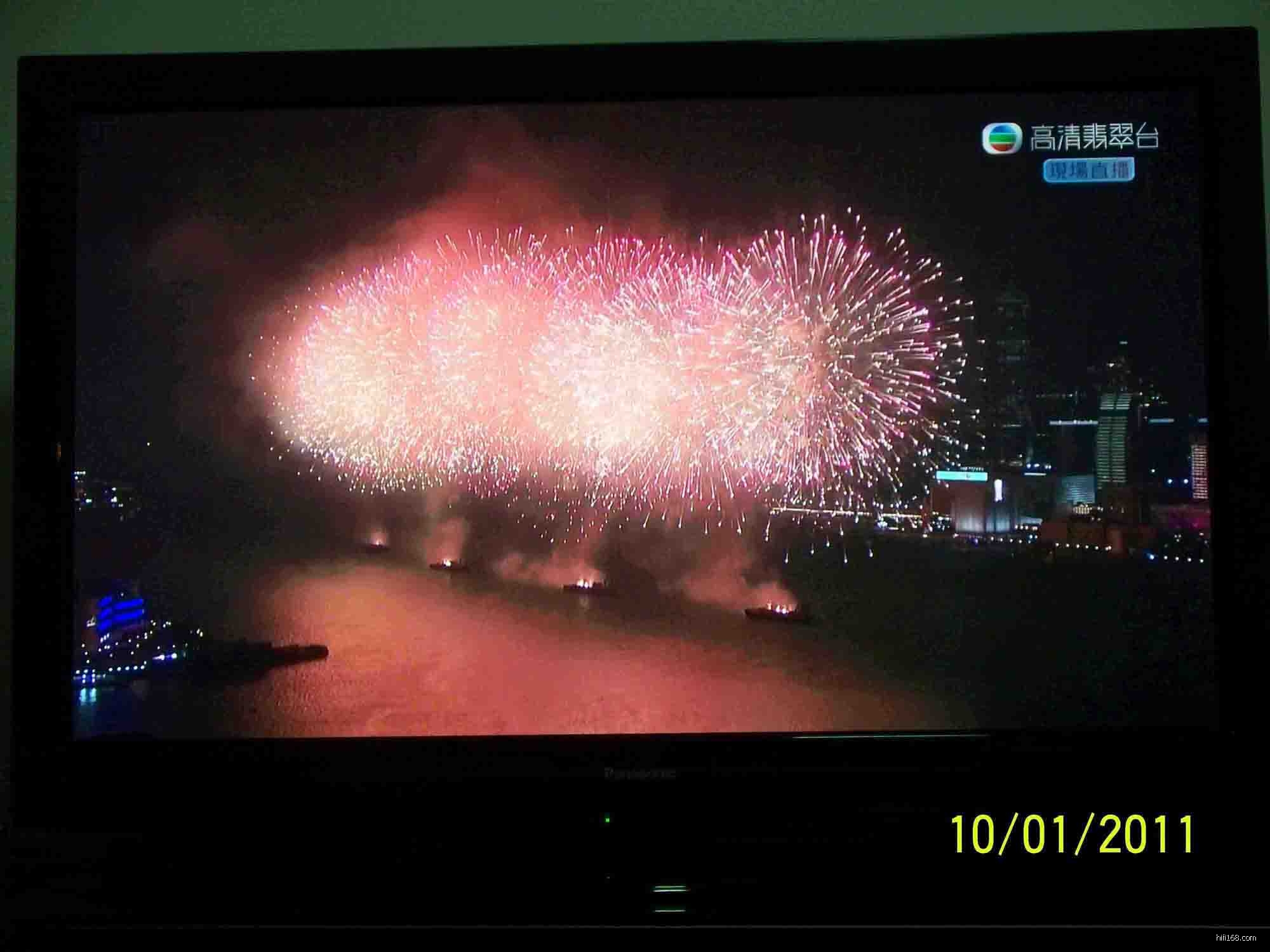 2011年香港国庆烟花汇演,电视直播的高清与普通机顶盒对比。