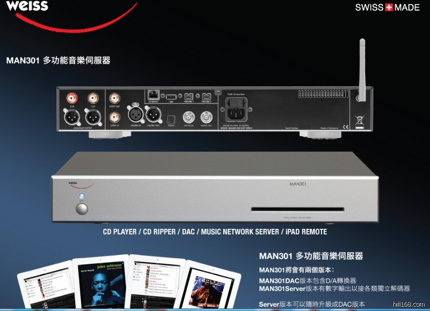 为了保护Weiss用户利益,瑞士Weiss即日起将对所有售出MAN301的编号和IP地址进行在线检测,由于MAN301为嵌入式系统设计,需要经常升级更新以获得最新功能及音质的提升,如果发现注册地与机身编号不符,有可能将无法获得MAN301的新升级。并可能无法拥有正常免费售后保修。(水货售后需付费)