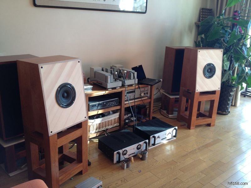 昨天开声了,非常新非常新的古董喇叭,按原图纸做了一对箱子,背板2.8cm厚,面板0.8cm,用的是进口云杉。脚架强悍。