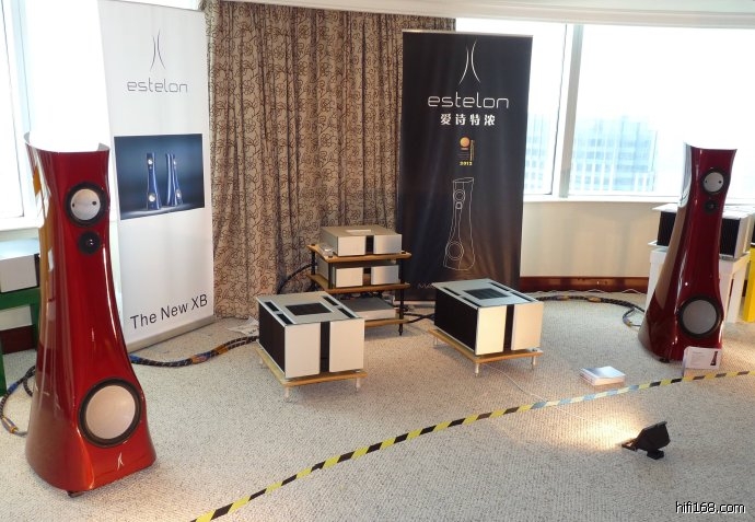 HIEND与HIFI,有一个不同之处在于HIEND器材几乎不计成本去制造顶级的货色。而HIFI,则用有限的成本与物料做尽可能好的喇叭。正因为HIEND的精益求精,花去的人力物力时间都很可观,因此,其索要更多的回报也是理所当然。如同保时捷与大众的区别。这次展会展出的estelonXADiamond高级喇叭,就可以归为HIEND一类。她不仅有着赏心悦目的外表,性感的弧线,内在也是分量十足,本身的重量达到136公斤一个!低音采用ACCUTON11寸陶瓷单元,中音采用