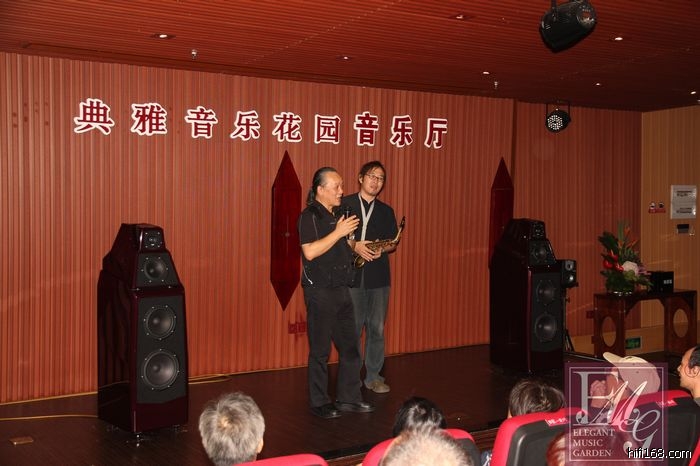 音箱及美国BOULDER普达2010前级+2050单声道后级所带来的优美乐章,活动现场特邀请著名萨克斯演奏家伍迪老师演奏了多首经典名曲,在场所有宾客都沉浸于优美的旋律之中,现场的快照请查看以下的链接:http://www.emg-audio.com/