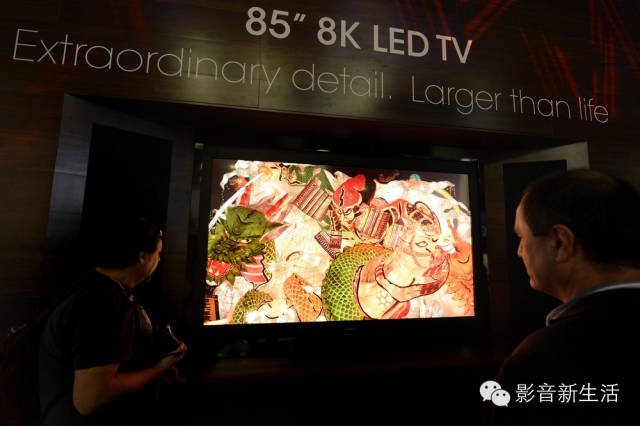 ▲本届CES夏普发布了一款85寸的8K电视,这台85寸8K LED电视(分辨率7680x4320)总像素数高达3317万之多,清晰度是4K电视的四倍多,其次这款电视还支持120Hz刷新率,同时还有强大的处理和视频优化功能。因此在夏普的展位我们可以看到它的口号:“The World‘s First 8K LCD”。