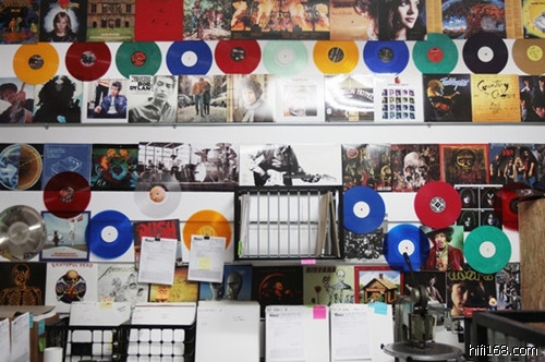 黑胶压盘厂Quality Record Pressings(简称QRP)内挂着的黑胶唱片。QRP隶属于Acoustic Sounds公司,位于美国堪萨斯州。Acoustic Sounds成立于1986年,其业务包括旧专辑再版、为艺术家录制唱片、销售音乐等。Acoustic Sounds四年前开始压制黑胶唱片,是美国新生代黑胶压盘厂之一。