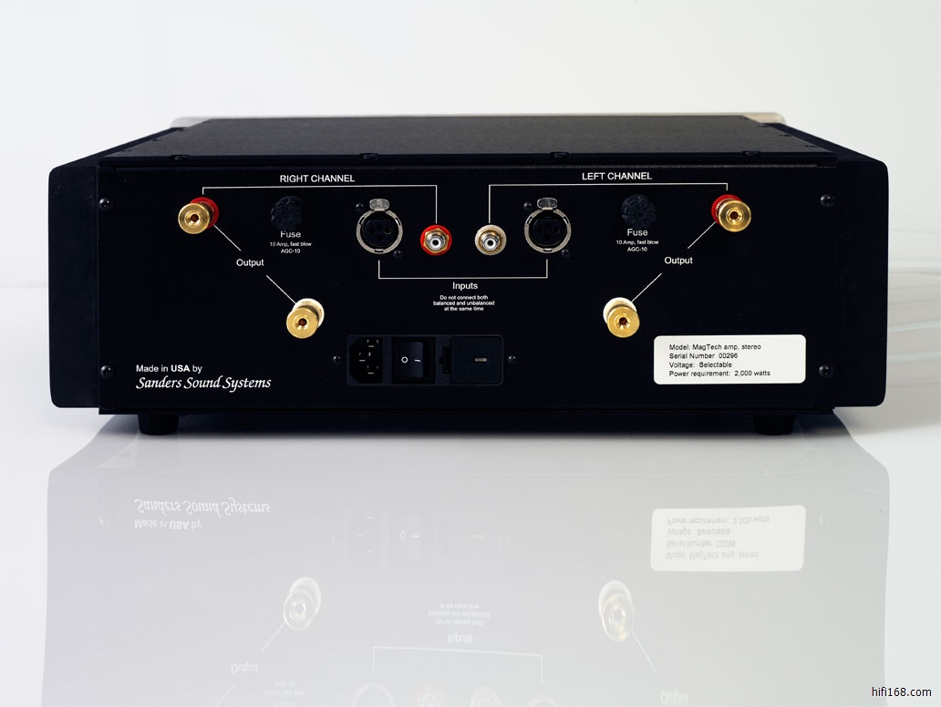 1976Sander开始生产ESL功放,ESL是优质的AB类后级功放,输出功率为每声道4008欧,MAGTECH后级则采用独有的专利技术制造的,输出功率达到每声道5008欧,MAGTECH里面有2个变压器,当输出功率属于正常时,低输出变压器工作,当输出功率随着大动态而陡然增加时,另一个变压器也会参加工作,这样这台功放的功率被非常有效的应用,在使用时几乎没有热消耗,经过公司多年的研究发现,大动态时,电压的变化超过30%,传统功放释放大量的热能,使得后级的原器件处于非线性状态,最终造成失真。电压控制电路是双变压器协调工作的核心,同时热追踪晶体管的卓越性能使的MEGTECH功放达到了绝无仅有的输出阻抗,可以推动世界上任何难于对付的喇叭。