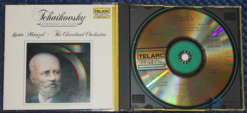 4、马泽尔 & 克里夫兰 - 《柴可夫斯基 第四交响曲》 泰拉克最早期录音,黄色全包围侧标标价4000日元(编号:CD-80047)罕见的日本松下钢字首版 内圈凸字版 (内圈非数据区绿色涂层,除此外完美如新 )