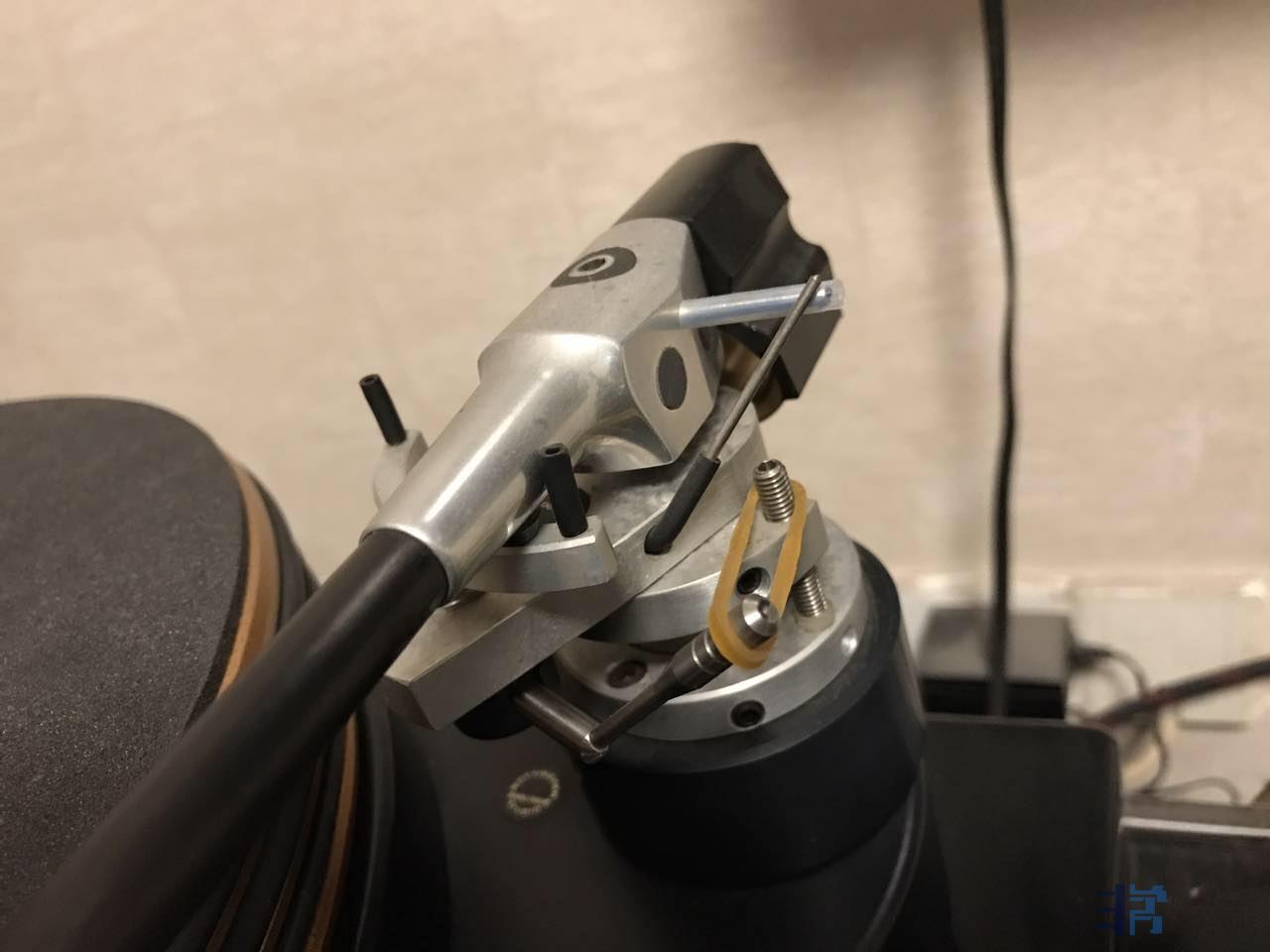 今天调整唱臂,结果把这个抬唱臂的东西搞的不灵了,现在抬上去以后停不住了,直接会滑下来。