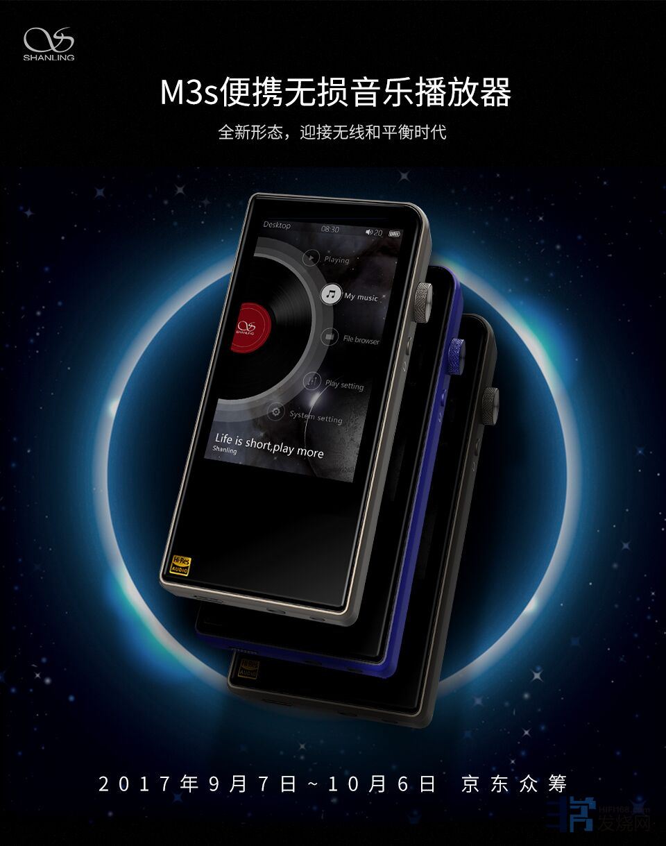 山灵M3s --全新形态,全面迎接无线和平衡时代!山灵2017年度诚意之作,山灵初代经典播放器M3首次升级,绝对意想不到的配置和售价。2017年9月7日上午10点,京东众筹正式上线。详细内容会在近期一一曝光,敬请期待!