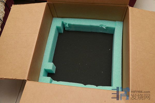 打开箱子,顶部厚厚的一块大海绵,里面又是厚厚的海绵。