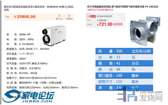 例如下面的一个发烧友视听室新风系统 美国霍尼韦尔(Honeywell)DR90-AP 2台一套5万。