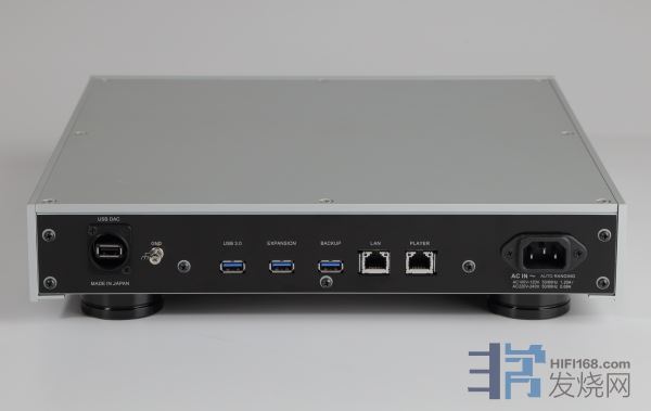 背板右侧是标示为LAN和PLAYER的两组RJ45网络埠。为何有两组?这是N1ZS/2A提升音质的另一个撇步。LAN连接路由器或网络交换器,让N1ZS/2A连网,区域网络内的串流播放机便可播放N1ZS/2A的档案,一般NAS也是这么用的。但N1ZS/2A多了PLAYER网络埠,可以直连串流播放机,如此一来,N1ZS/2A与播放机之间不必经过任何网络设备,减少了接点与网络线,资料传输不仅更直接,受到的干扰更是大幅减少,可对声音带来明显的提升效果。